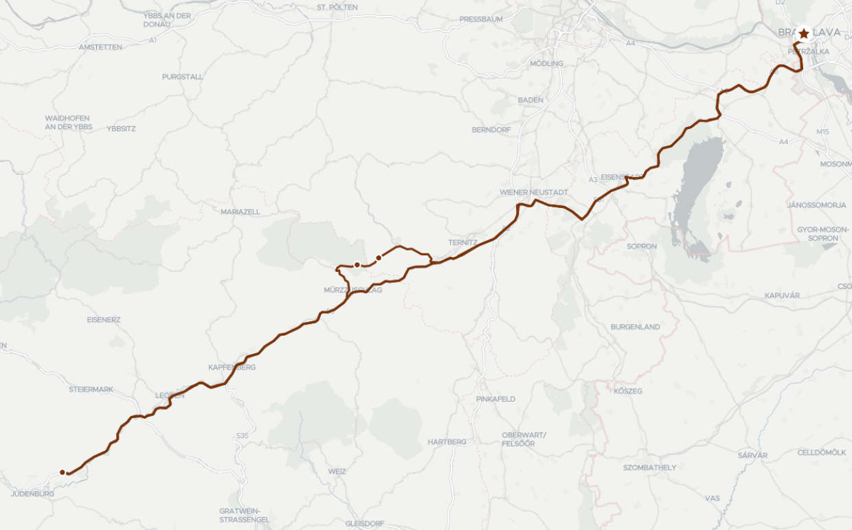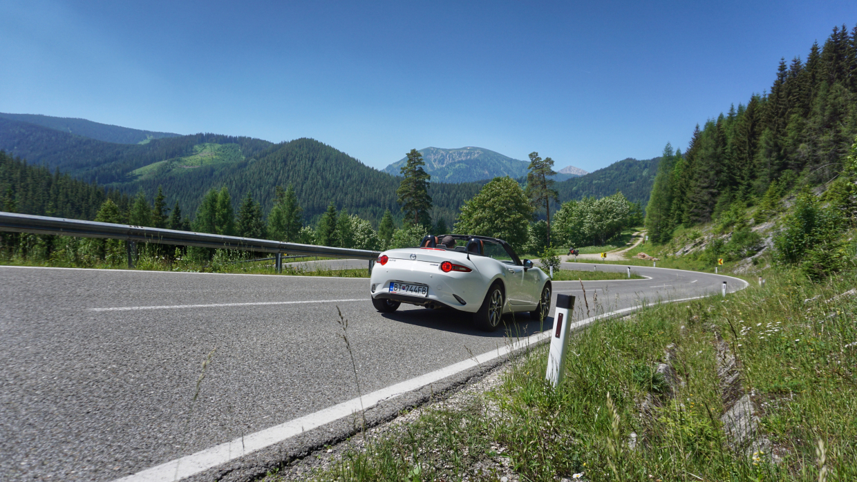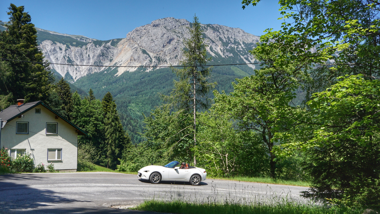 Skoré ranné (07:00) prevzatie auta v centrále Miata Tour. Následne krátka obhliadka vozidla a inštruktáž. Už po približne hodinke a pol sa ocitnete v magickom horskom mestečku Reichenau an der Rax, ktoré je bránou do pohoria Rax. V mestečku si môžete spraviť zastávku na výbornú kávu či čokoládu priamo v unikátnej vile Wartholz, dokončenej v roku 1872. Z tohto bodu Vás čaká atraktívna jazda horskými cestami naprieč pohorím Rax, Krásne výhľady na alpské lúky, zasnežený Schneeberg či prejazdy tradičnými dedinkami. Vrcholom budú prejazdy cez horské sedlo Preiner Gscheid (1070m). Pokračovať budete až priamo do mestečka Spielberg, kde sa nachádza známy okruh Red Bull Ring. Odhadovaný príchod je okolo 11:30 čiže budete mať ešte dostatok priestoru na obed priamo na okruhu alebo v jeho okolí. O 14:00 to však všetko naplno vyvrcholí štartom hlavnej kategórie MotoGP. Čaká vás unikátna atmosféra a jedinečný zážitok. Po ukončení pretekov vás bude čakať priamy presun naspäť do Bratislavy. Orientačný čas návratu je medzi 20:00 - 21:00, v závislosti od toho či sa počas spiatočnej ceste niekde zastavíte aj na večeru.